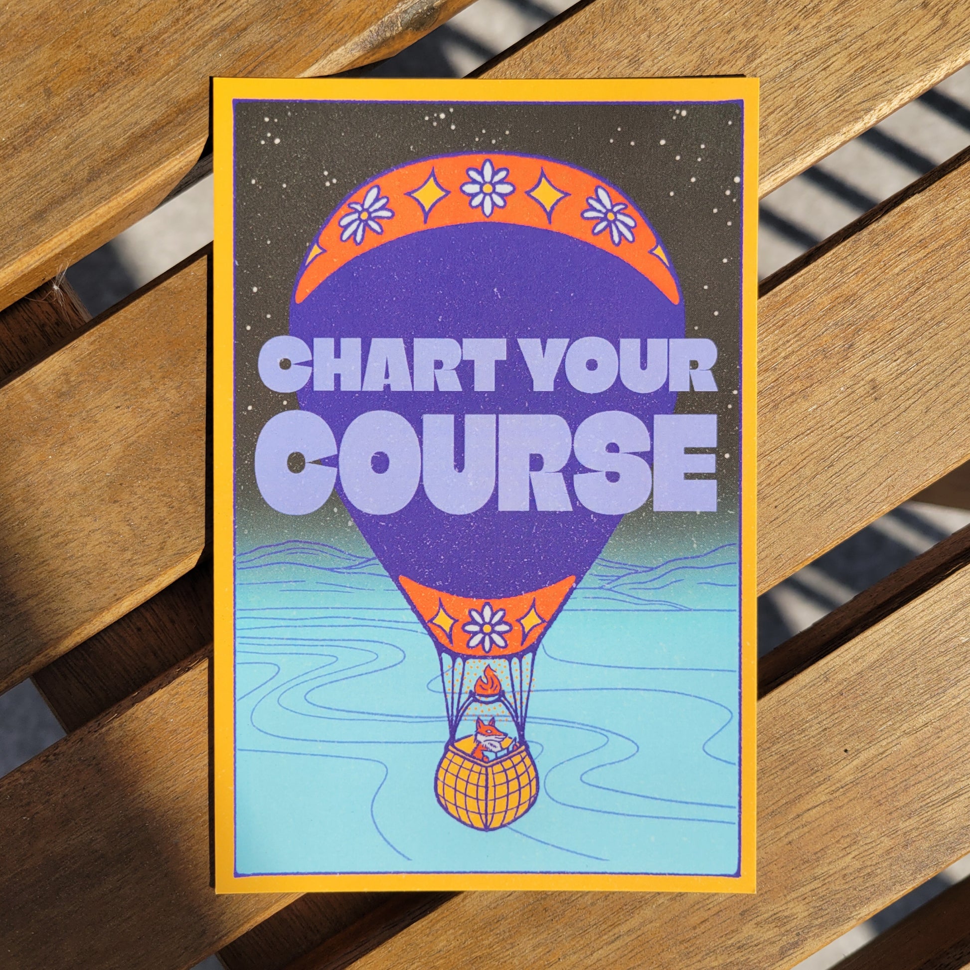 Brighten someone’s day with our "Chart Your Course" postcard, featuring a delightful scene of our mascot, Cosmo riding in a hot air balloon. The postcard comes in two distinct themes—morning and night—so you can choose the vibe that matches your message best.